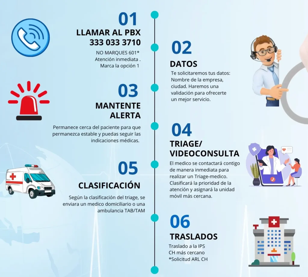 ✔️ Atendidas por un médico en sitio o mediante traslado en ambulancia, bajo cobertura DMF MEDICS.